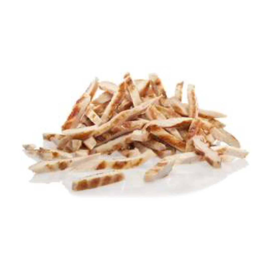 Ζουμερές ψημένες λωρίδες κοτόπουλο από 100 στήθος, με grill marks, παγωμένες με τη μέθοδο IQF. Ιδανικό προϊόν για ceasar salad, σαλάτες, σάντουιτς, pizza topping.