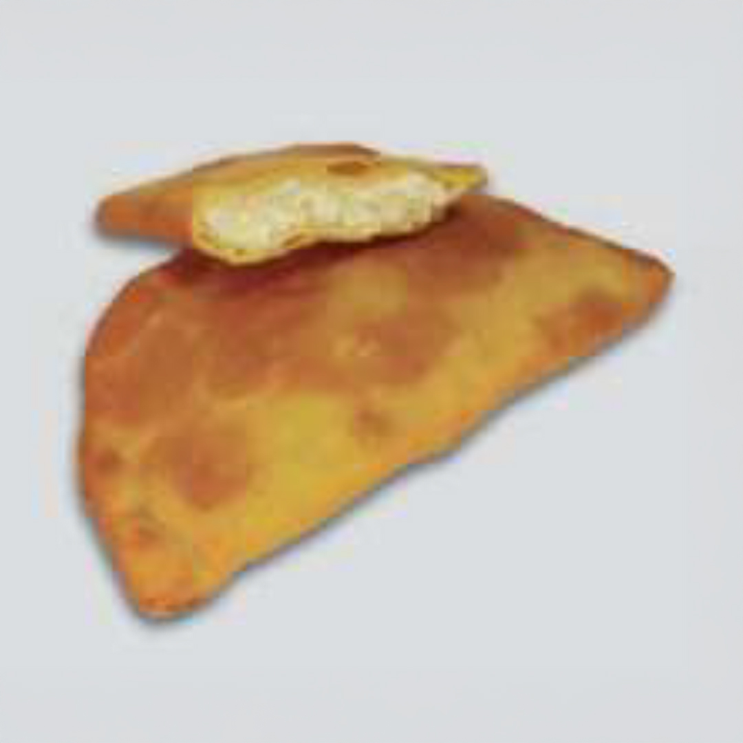 Παραδοσιακό φύλλο ζύμης χωριάτικο που μέσα του διπλώνει μείγμα ελληνικών τυριών, που ο συνδυασμός με τα αυγά δημιουργεί μια πλούσια γεμάτη γεύση. Διπλώνεται με χειροποίητο τρόπο σε σχήμα μισοφέγγαρου, συσκευάζεται με μεμβράνη κατάλληλη για τρόφιμα που διασφαλίζει την εύκολη διαχείριση και τη σωστή προστασία του προϊόντος.