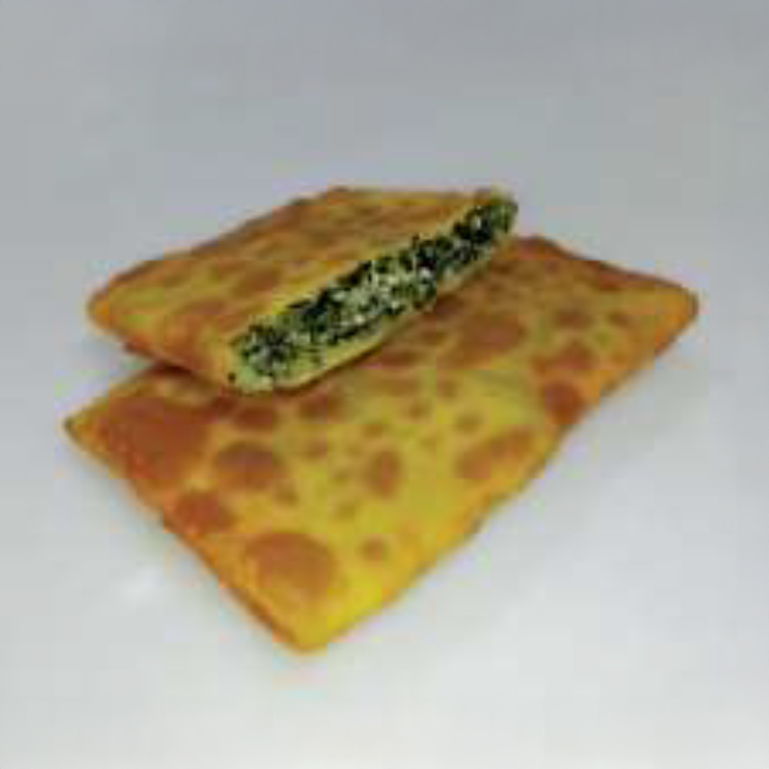 φύλλο ζύμης χωριάτικο που μέσα του διπλώνει μείγμα από διαλεχτό σπανάκι, κρεμμύδι,