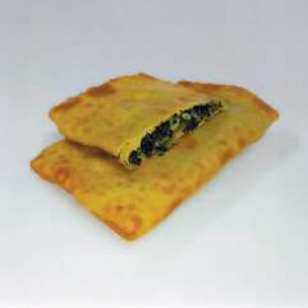 Παραδοσιακό φύλλο ζύμης χωριάτικο που μέσα του διπλώνει μείγμα από διαλεχτό σπανάκι, κρεμμύδι, πράσο, που ο συνδυασμός τους δημιουργεί μια πλούσια γεμάτη νηστίσιμη γεύση χορταρικών. Διπλώνεται με χειροποίητο τρόπο σε τετράγωνο σχήμα, συσκευάζεται με μεμβράνη κατάλληλη για τρόφιμα που διασφαλίζει την εύκολη διαχείριση και τη σωστή προστασία του προϊόντος.